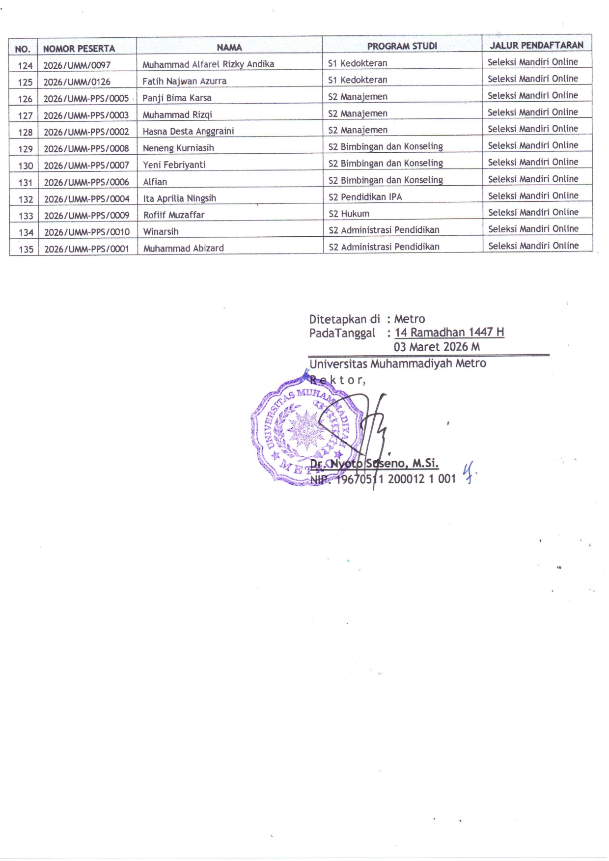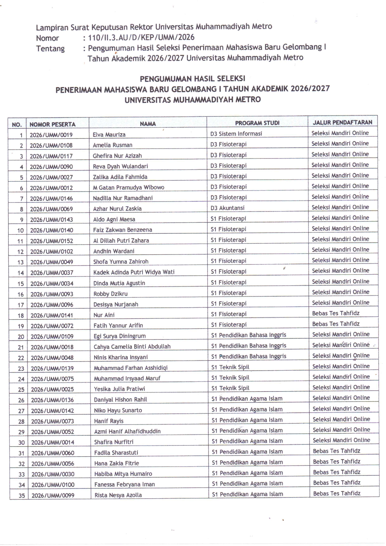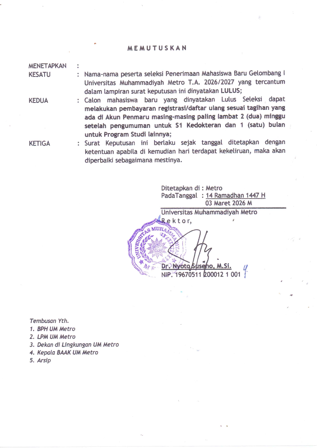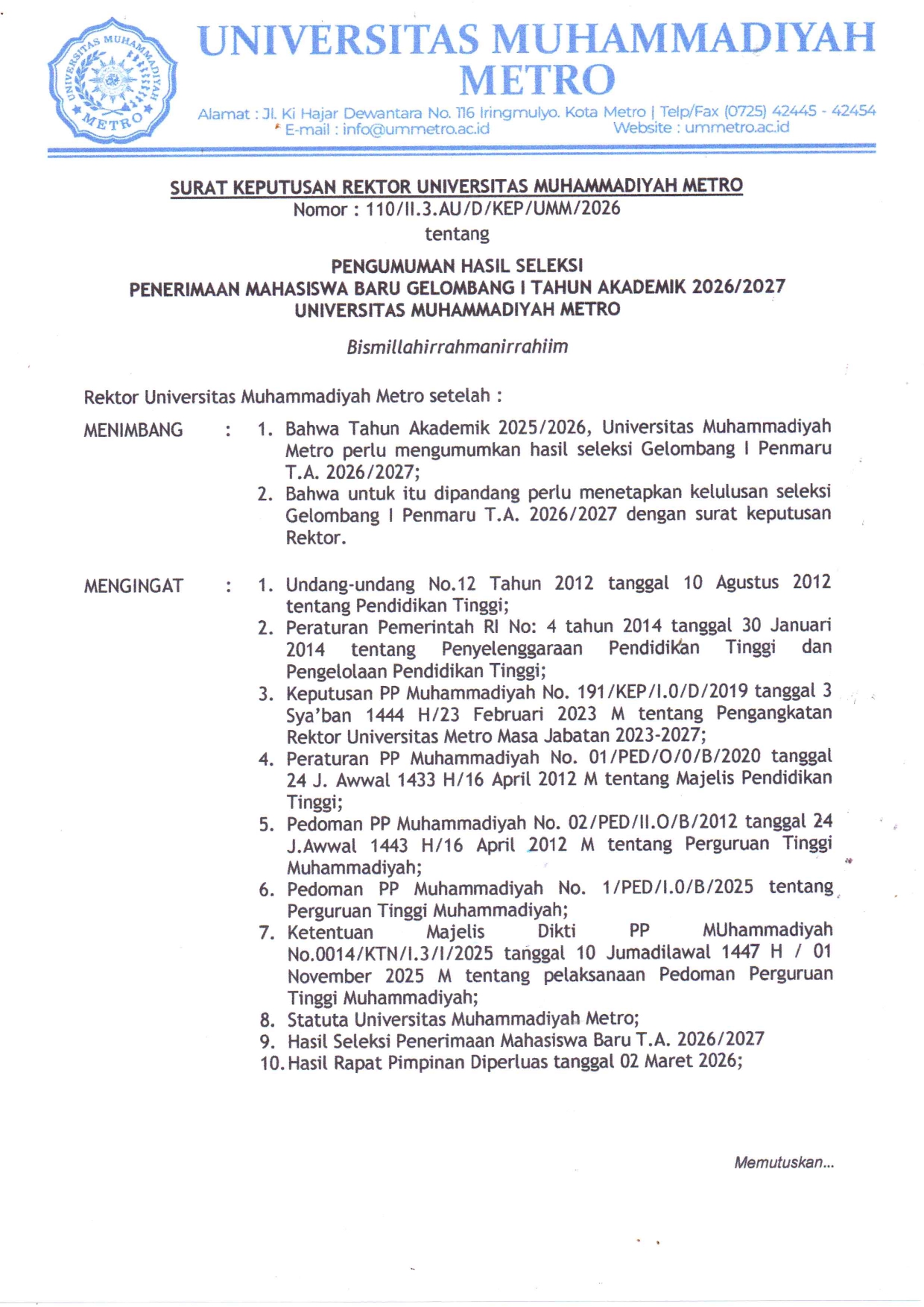 SK Pengumuman Hasil Seleksi Penmaru Gelombang 1