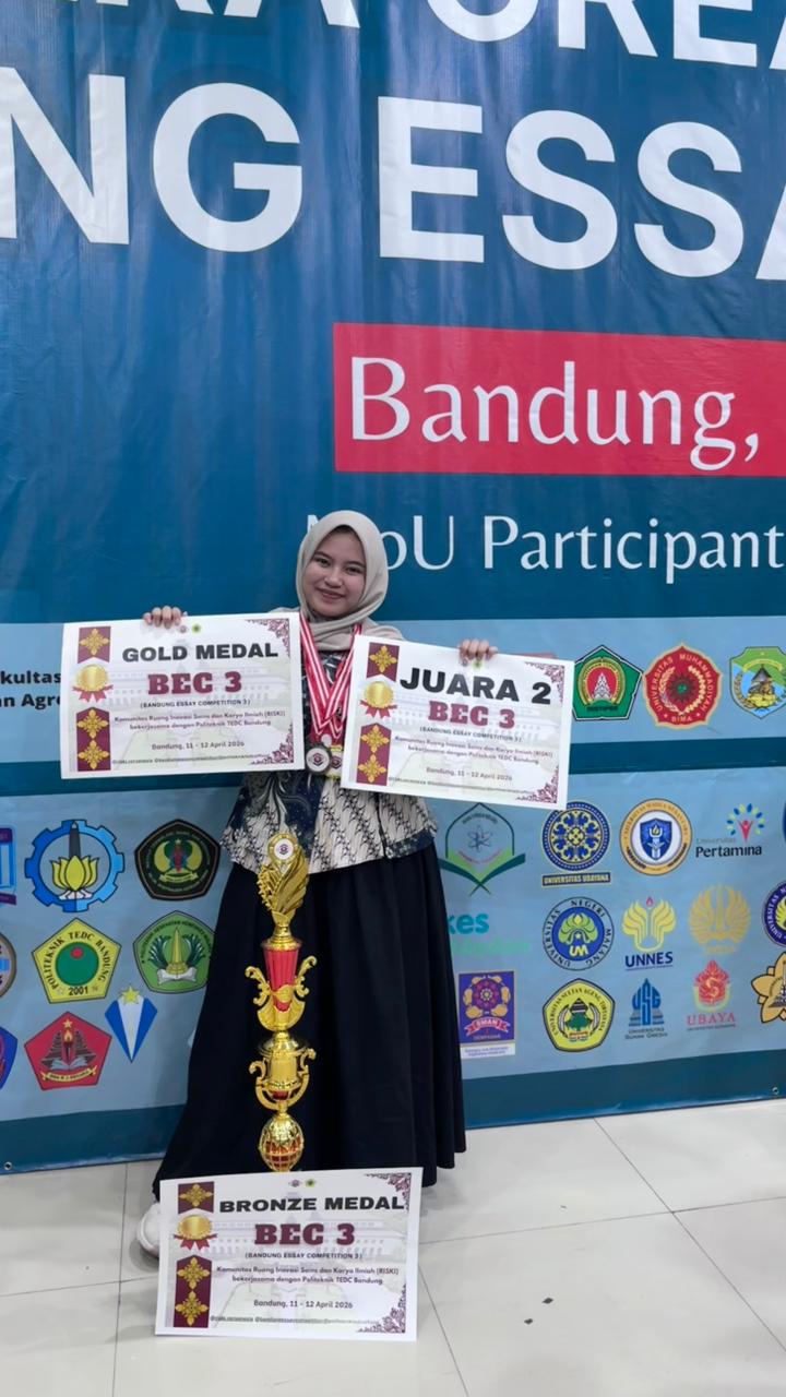 Dalam ajang bergengsi Bandung Essay Competition 3, kompetisi yang mempertemukan pemikir muda berbakat dari seluruh Indonesia, Hayu berhasil menorehkan prestasi yang impresif. Acara yang diselenggarakan oleh Riski Versenesia bekerja sama dengan Politeknik TEDC Bandung ini mengusung tema besar, “Menjawab Tantangan Zaman: Peran Pemuda dalam Menentukan Arah Indonesia,” dan berlangsung di Bandung pada 11–12 April 2026.